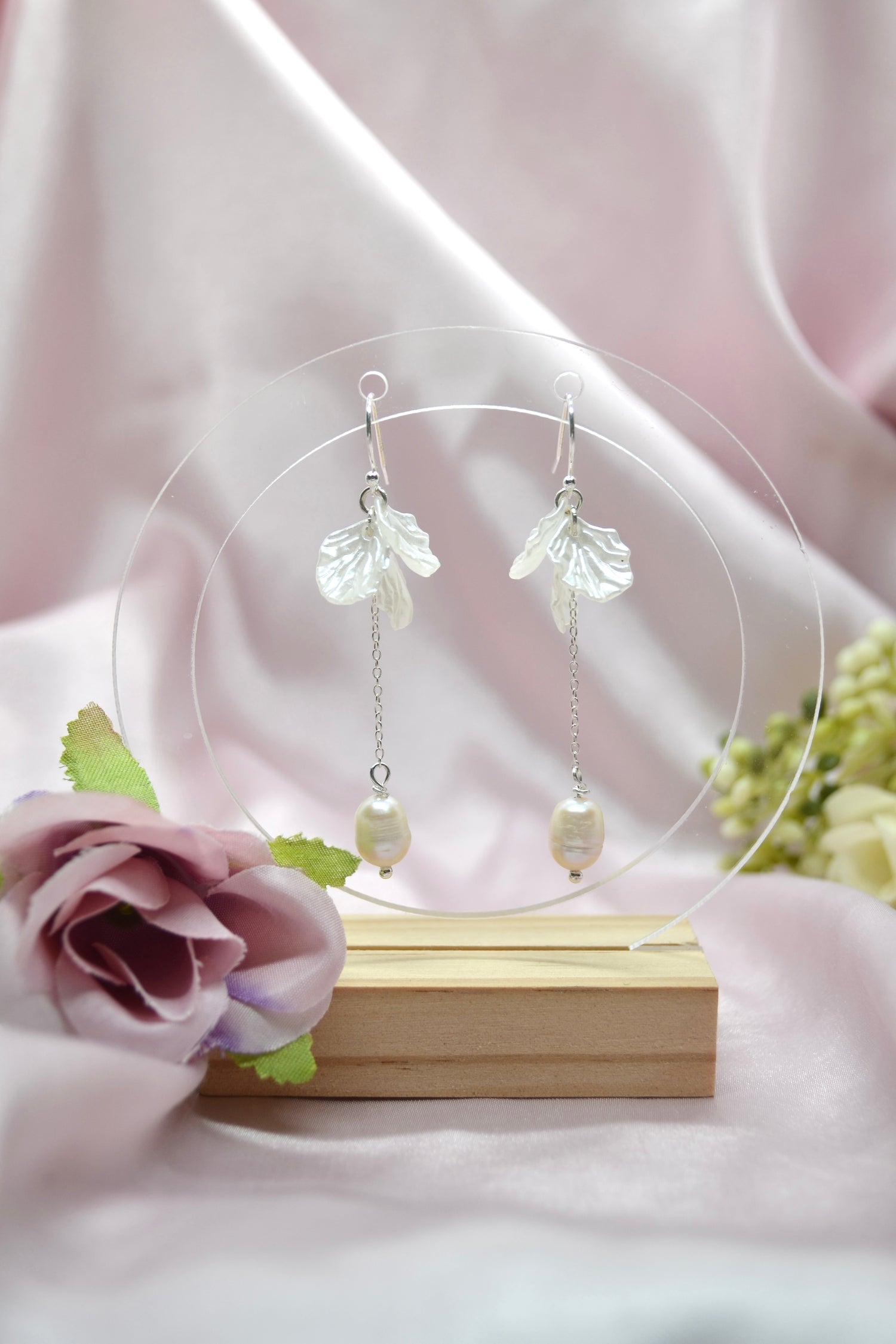 Birthday Earrings โ Pink Flower & Pearl Drops