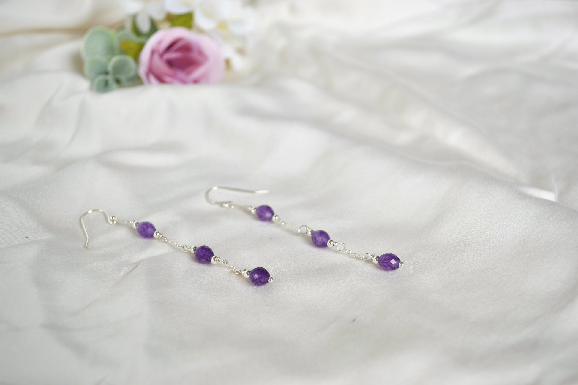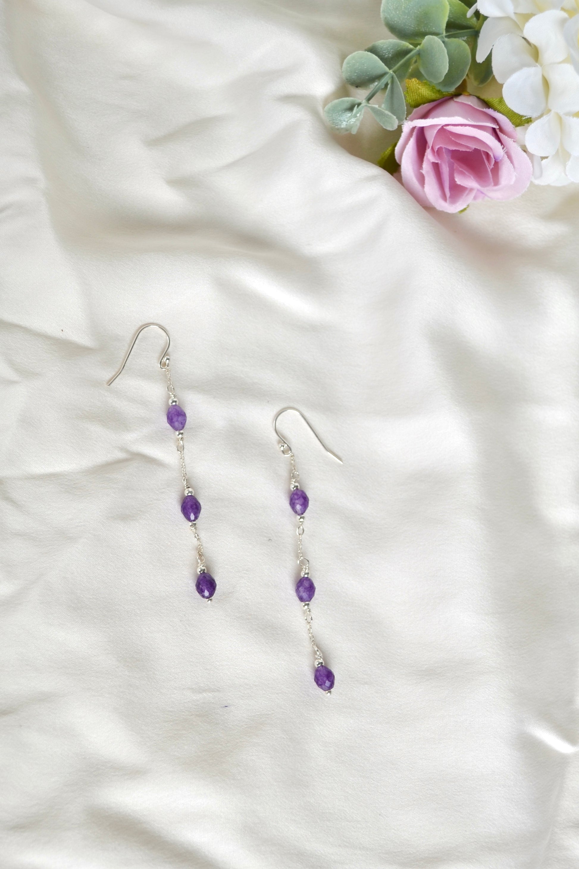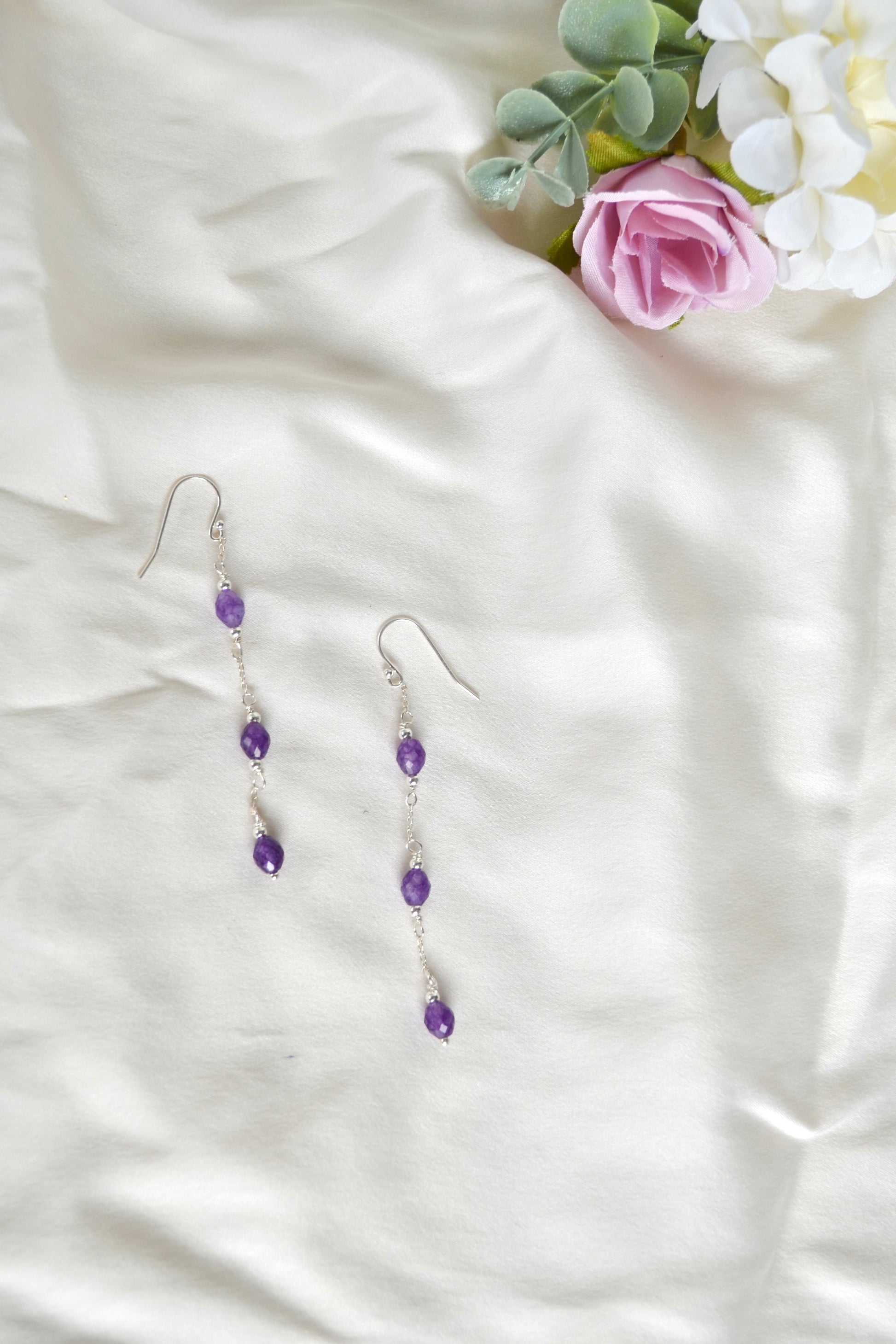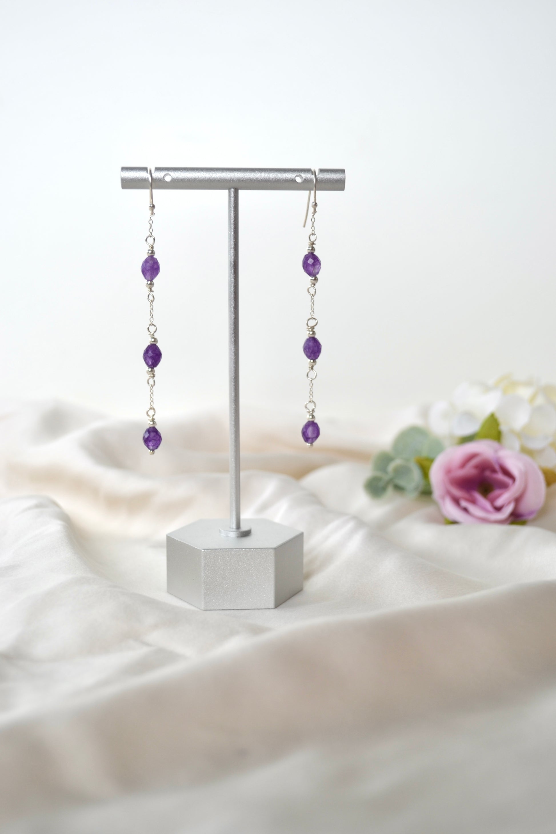Elegant, flowing, and full of gentle magic — these long dangly amethyst earrings are made for the ones who love a little sparkle with their serenity. Each pair features natural amethyst gemstones, known for their soothing energy, clarity, and connection to calm. Their soft purple hues catch the light beautifully, creating a graceful shimmer with every movement.