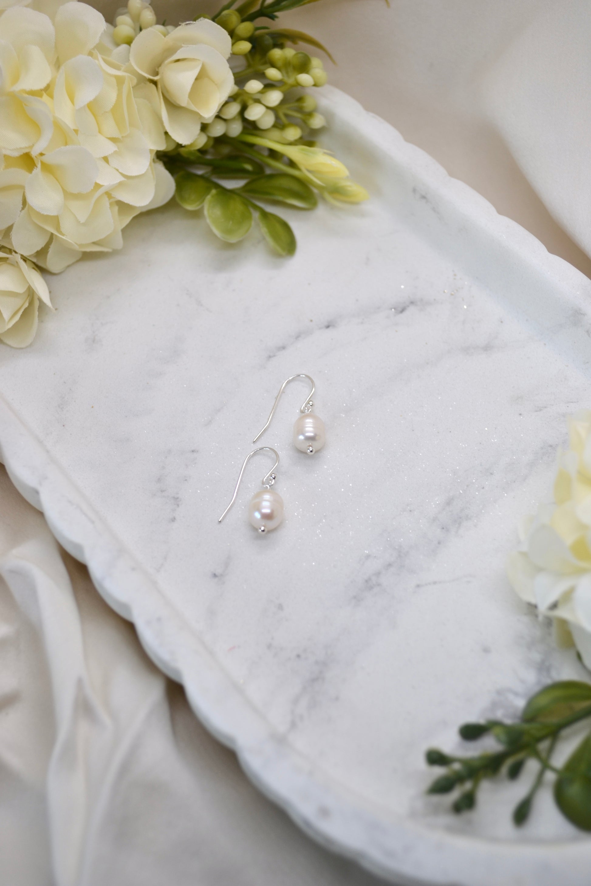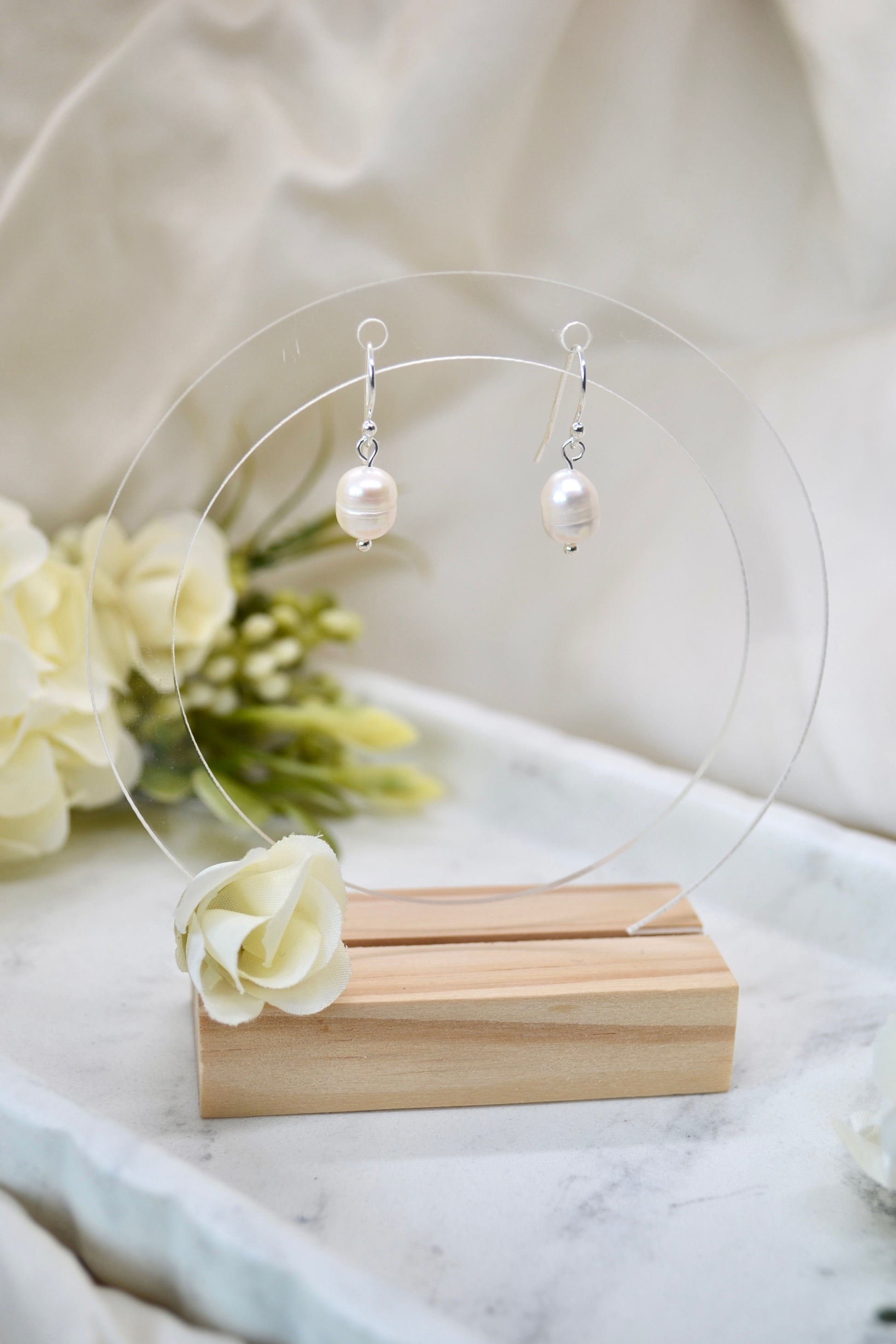 Understated and timeless, these earrings showcase a single luminous freshwater pearl suspended from sterling silver hooks. The simple drop design highlights the natural beauty of the pearl, offering effortless elegance that pairs perfectly with both everyday wear and special occasions. A classic staple for any jewellery collection. Perfect for layering.