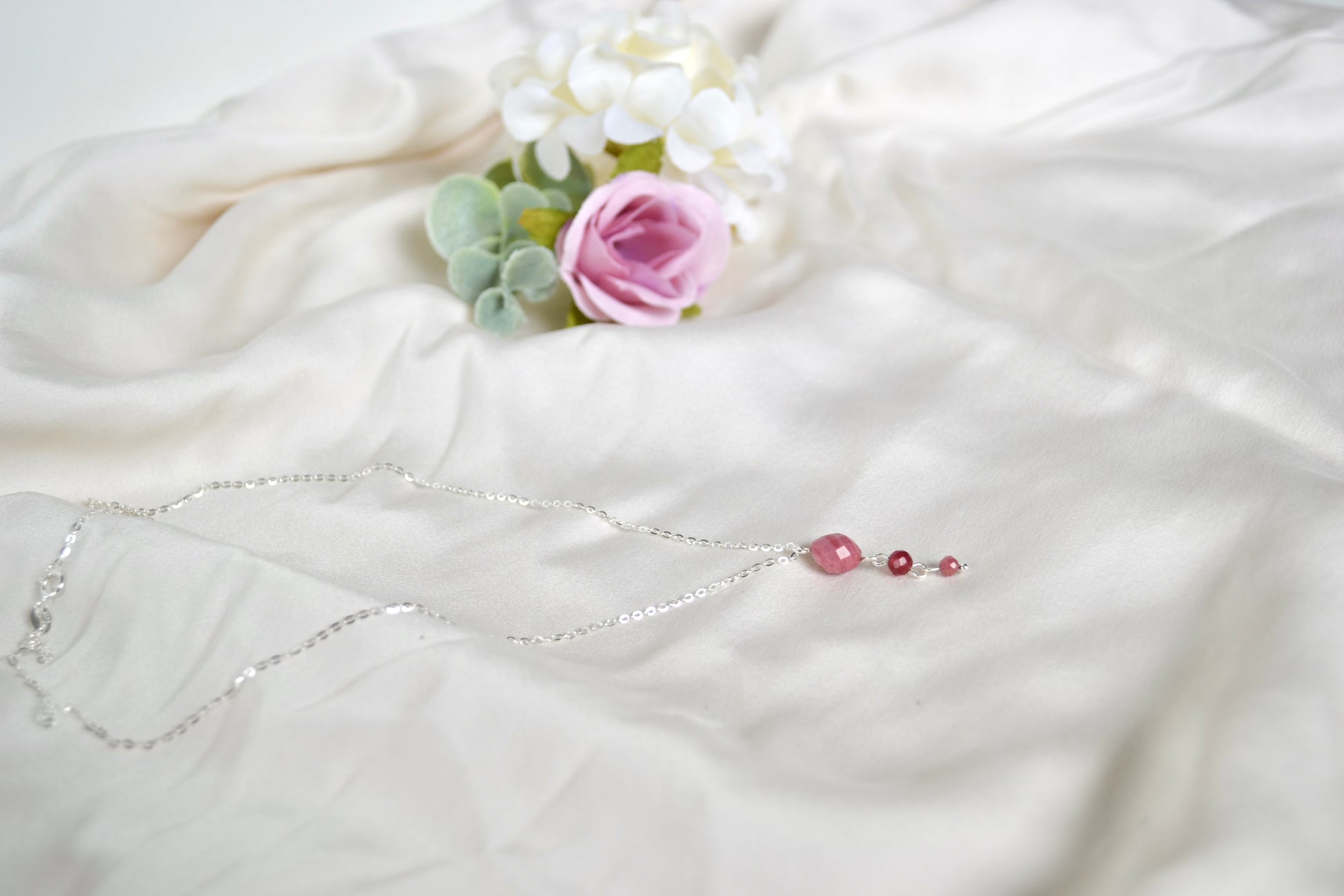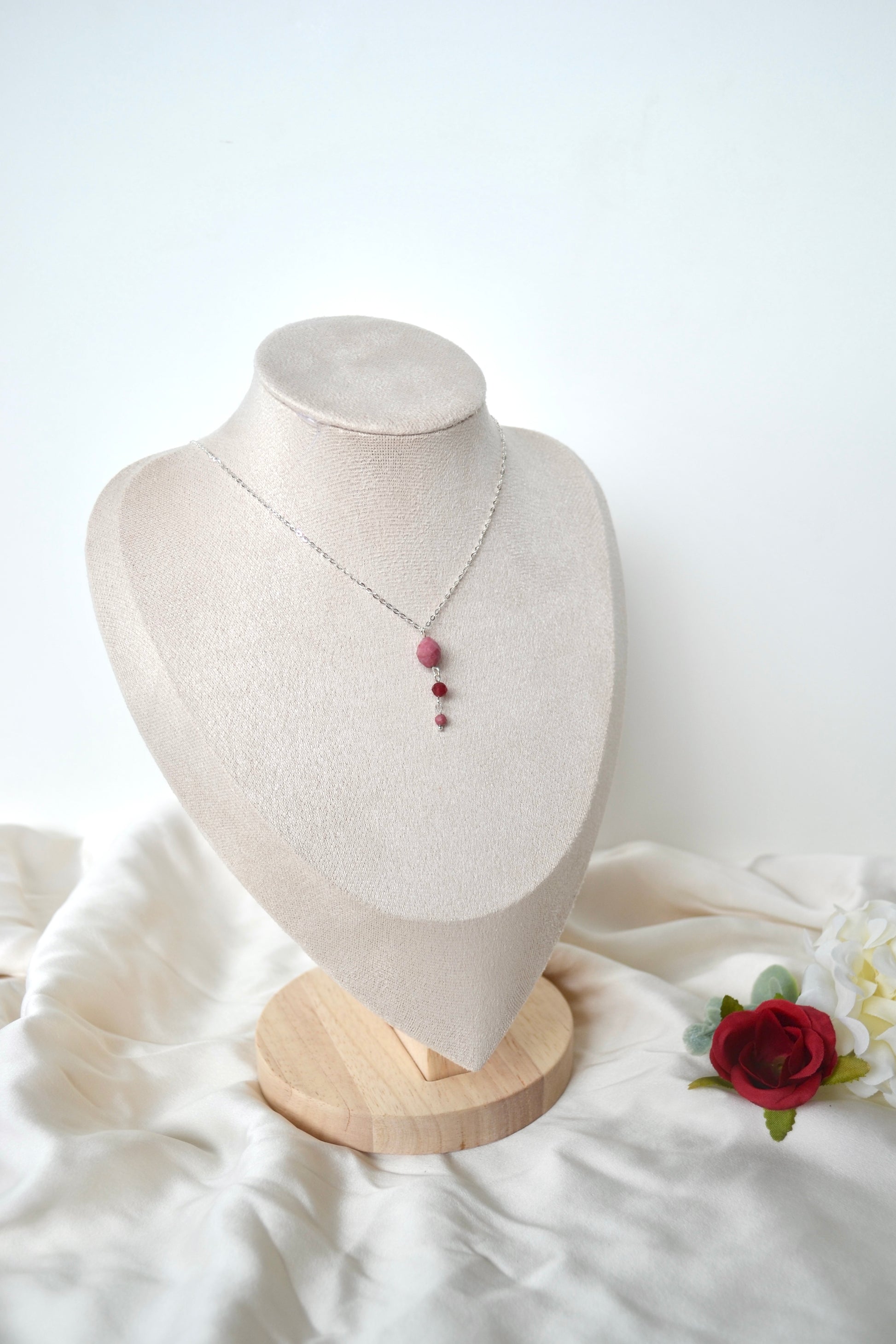 A soft yet striking piece, this necklace pairs the gentle blush tones of rhodochrosite with the rich warmth of red chalcedony. Rhodochrosite is loved for its soothing, heart-opening energy and its natural pink banding that looks beautifully feminine and unique. Red chalcedony adds a deeper glow, symbolising vitality, confidence, and grounded strength.